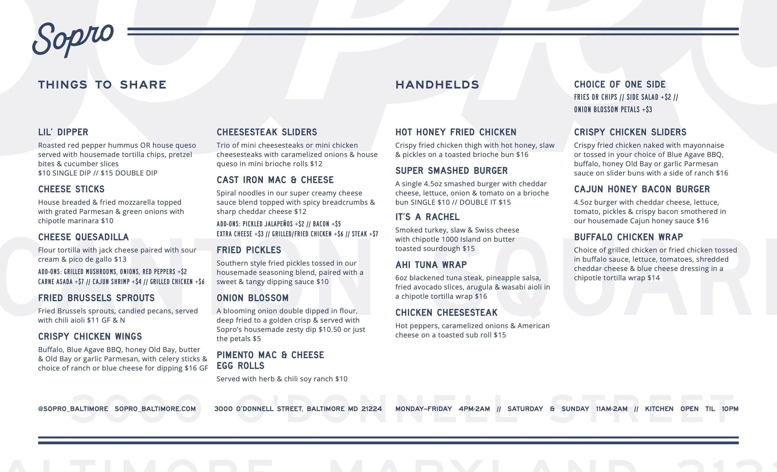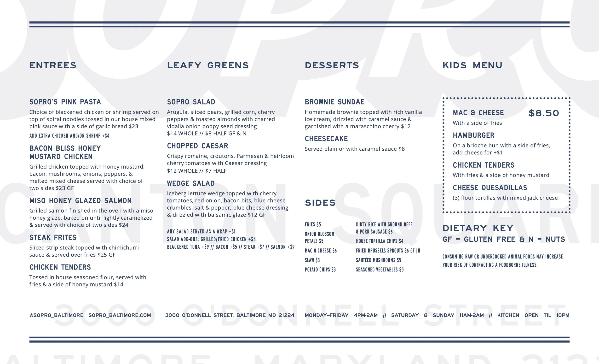 MONDAY-FRIDAY 4PM-10PM // SATURDAY 11AM-10PM // SUNDAY 10AM-10PM
